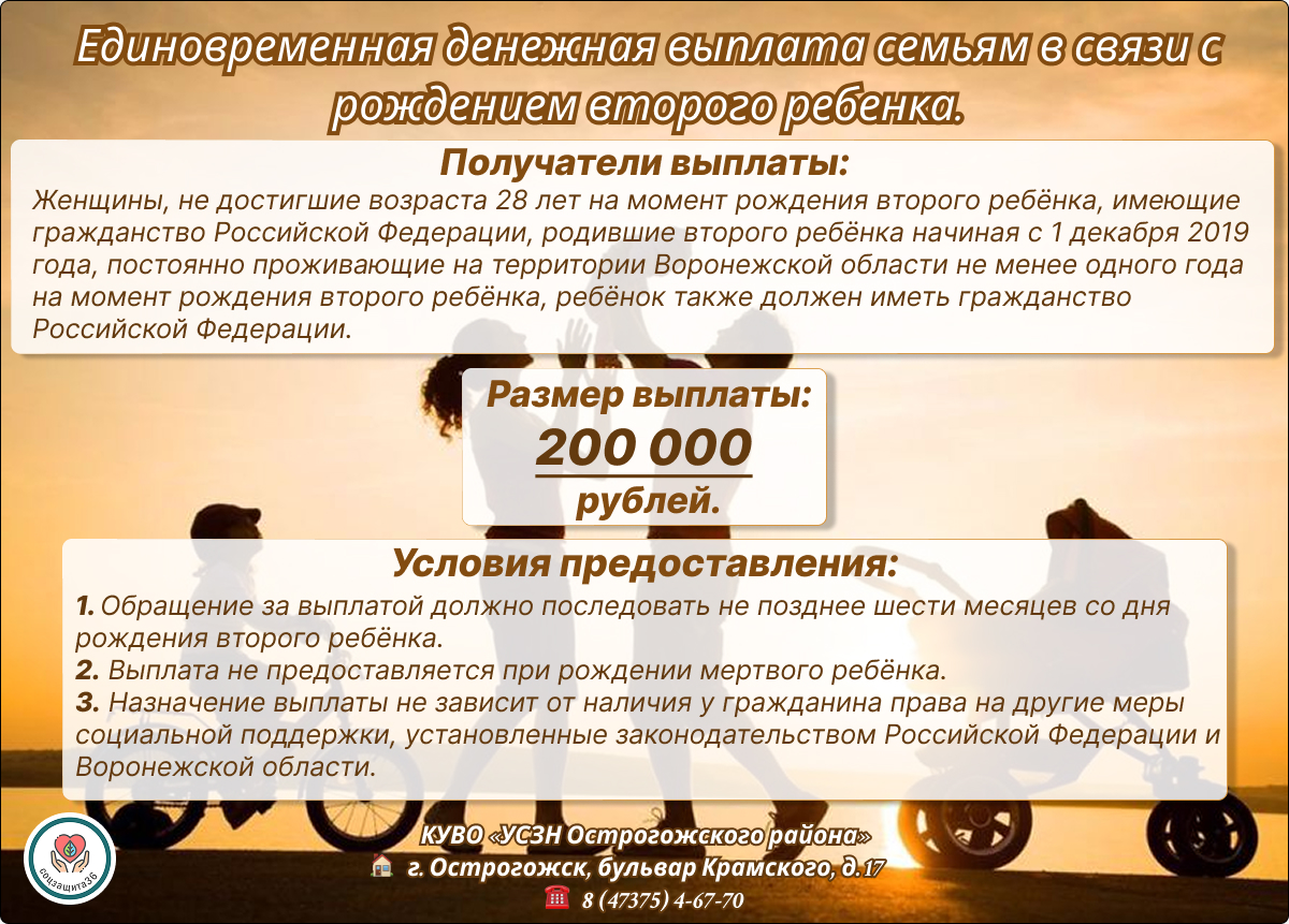 Единовременная денежная выплата семьям в связи с рождением второго ребенка.