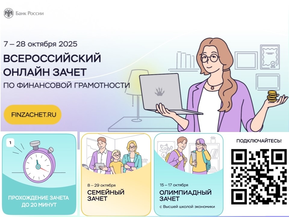 Оцените свои знания, примите участие во Всероссийском онлайн-зачете по финансовой грамотности с 7 по 28 октября 2025 года.